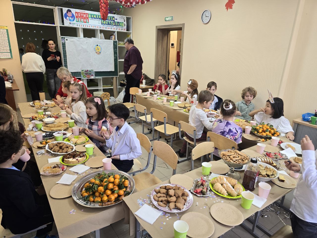 Все дети получили новогодние подарки от Детского Центра МФДЕН. Завершился праздник чаепитием с домашней выпечкой.