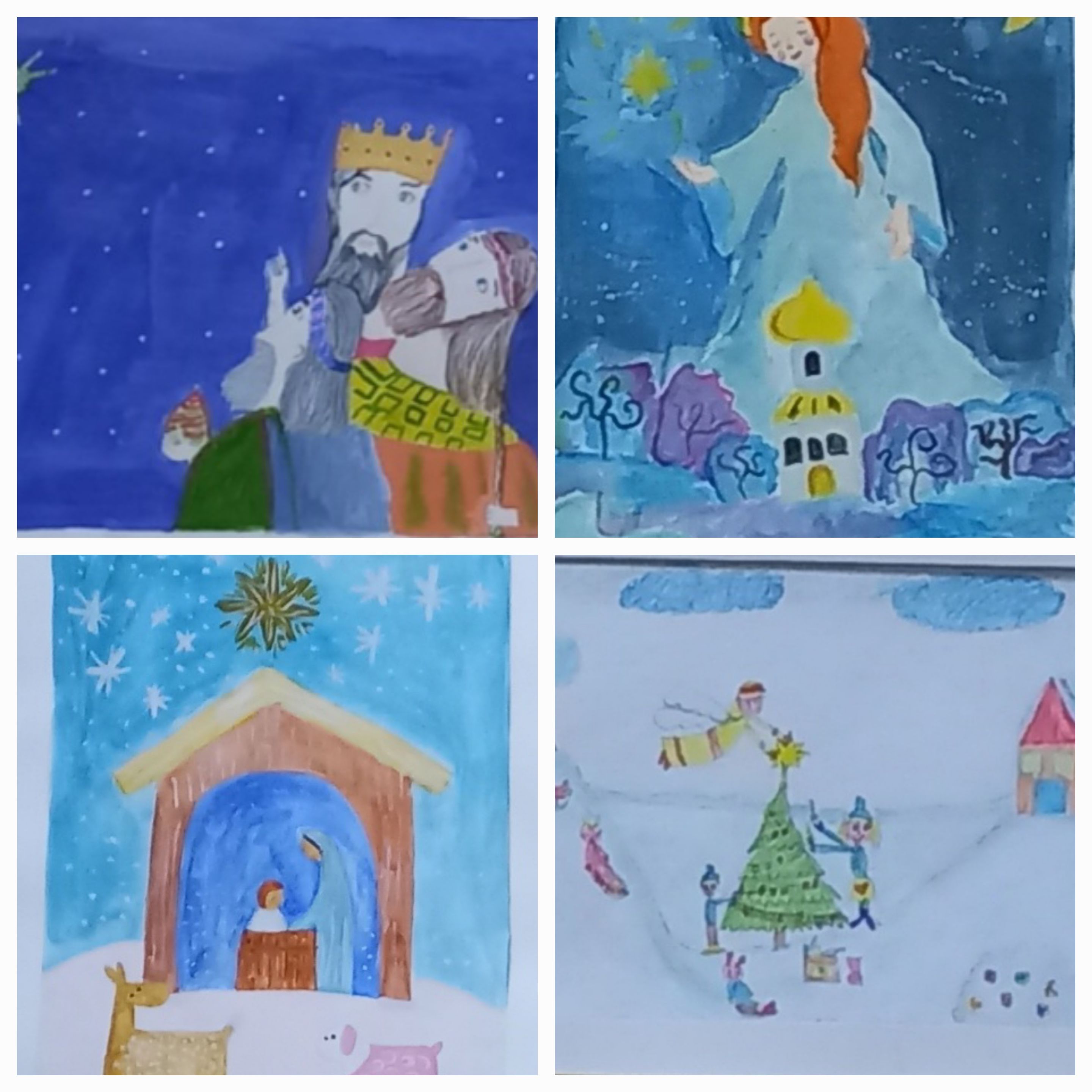 Светлые рождественские рисунки, созданные юными художниками, переносят в атмосферу праздника и таинственных событий, связанных с приходом в мир Богочеловека — Иисуса Христа.