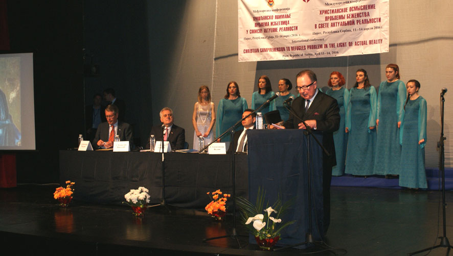 Пирот. Сербия. 11 апреля 2016 года в городе Пирот (Сербия) в здании Дворца культуры г. Пирота состоялось официальное открытие XXII ежегодной международной конференции Международного общественного Фонда единства православных народов (МОФЕПН) на тему: «Христианское осмысление проблемы беженства в свете актуальной реальности», организованной Фондом при участии руководства Республики Сербии, депутатов Парламента этой страны, священноначалия Сербской Православной Церкви, мэрии г. Пирот, политических, общественных организаций Сербии. В работе форума участвуют представители более, чем из 20 стран — депутаты, члены правительства, православные архиереи и клирики, политические и общественные деятели, ученые, журналисты из Австрии, Армении, Беларуси, Бельгии, Болгарии, Боснии и Герцеговины, Германии, Грузии, Иордании, Казахстана, Латвии, Молдовы, Палестины, Польши, России, Румынии, Сербии, Украины, Черногории, Чехии и других стран.