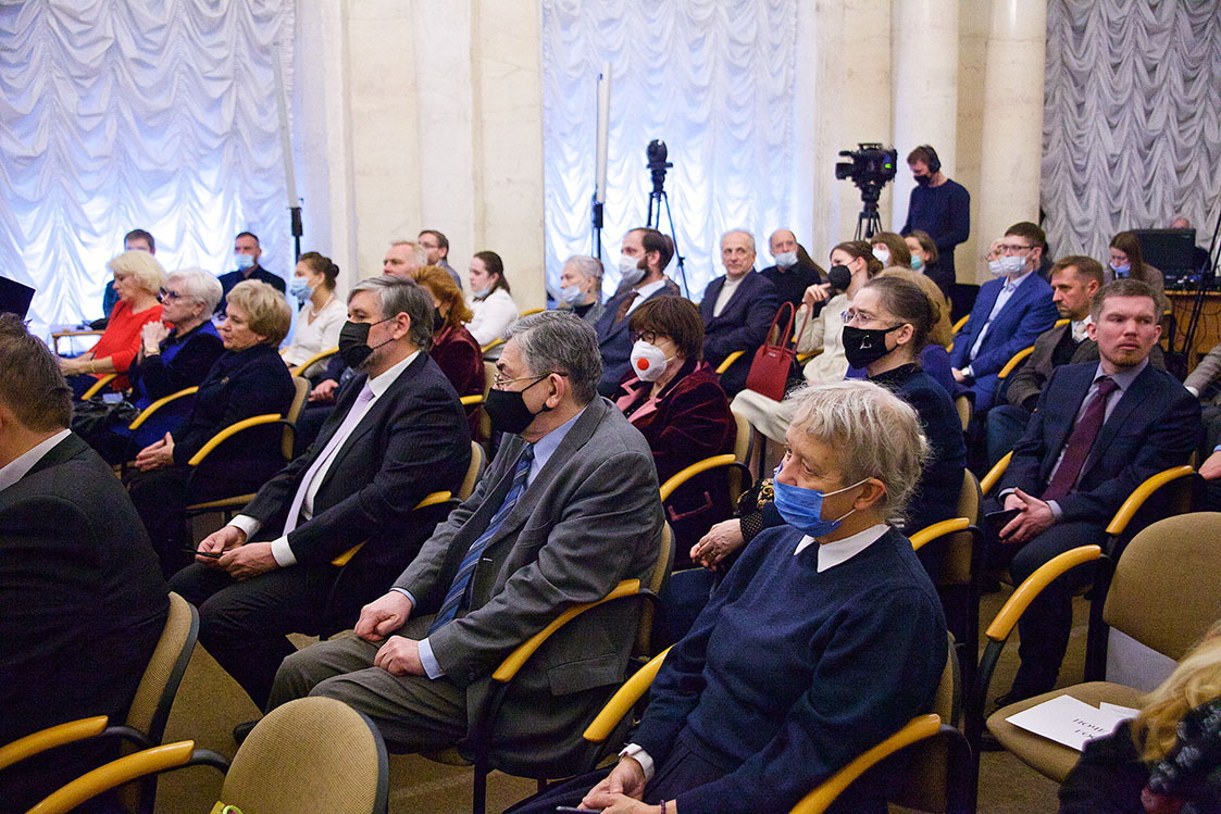 В зале Президиума РАН собрались академики и члены-корреспонденты Российской академии наук, видные ученые-историки, архивисты, философы, филологи и другие известные российские и зарубежные деятели гуманитарных наук, представители государственных органов власти, религиозных организаций.