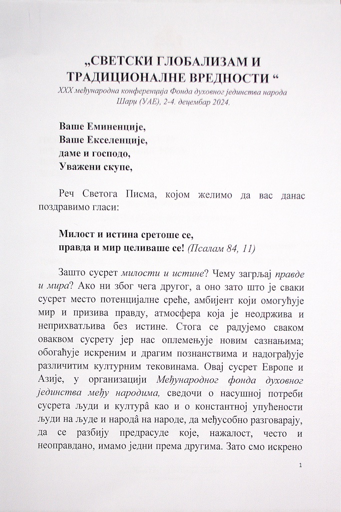 Москва. Россия. Под таким названием 2-3 декабря 2024 года в городе Шарджа (Объединенные Арабские Эмираты) состоялась XXX юбилейная ежегодная Международная конференция Международного Фонда духовного единства народов (МФДЕН), в работе которой в режиме он-лайн и очного присутствия приняли участие представители 24 стран Европы, Азии, Африки, Ближнего Востока и США из числа депутатов парламентов, религиозных, политических и общественных деятелей, дипломатов, ученых, публицистов. Конференция собрала в гостинице «Роял-отель» и на площадях православной общины Русской Православной Церкви при храме святого апостола Филиппа, единственного храма Московского Патриархата в странах Персидского залива, участников форума с целью обстоятельно рассмотреть актуальные проблемы формирования и продвижения в жизнь современного общества духовно-нравственные нарративы традиционных ценностей, объединяющих страны Глобального Юга или Мирового большинства, находящихся в состоянии поиска ответов на вызовы либерального Запада во главе с США, пытающегося навязать человечеству собственную повестку, как правило, не отвечающую глубинным национальным интересам государств и народов не западного вектора развития.