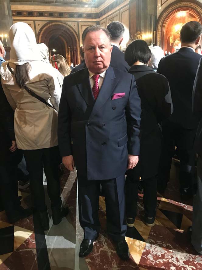 Москва. Россия. В ночь с 1 на 2 мая 2021 года Президент Международного общественного Фонда единства православных народов (МОФЕПН) профессор В.А.Алексеев молился за праздничным богослужением по случаю Светлой Пасхи Христовой в храме Христа Спасителя в Москве, которое совершил с сонмом архиереев и клириков Святейший Патриарх Московский и всея Руси Кирилл.