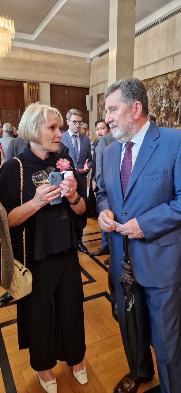 Белград. Сербия. 14 июня 2023 года. Сербское Отделение Международного Фонда духовного единства народов (СО МФДЕН) в лице руководителя Отделения Натальи Коцев было приглашено и участвовало в торжественном приеме по случаю празднования Дня России в Посольстве Российской Федерации в Сербии. Среди высокопоставленных гостей, посетивших торжественный прием, были Президент Сербии Александр Вучич, Министр иностранных дел Сербии Ивица Дачич и Министр энергетики Сербии Дубравка Джедович. Мероприятие стало самым масштабным за последнее время, собрав несколько сотен гостей. Отпраздновать День России пришли представители сербских политических партий и общественных организаций, многочисленные послы дружественных иностранных государств, деятели культуры, представители бизнеса и духовенства, российские соотечественники из разных городов Сербии, а также журналисты.