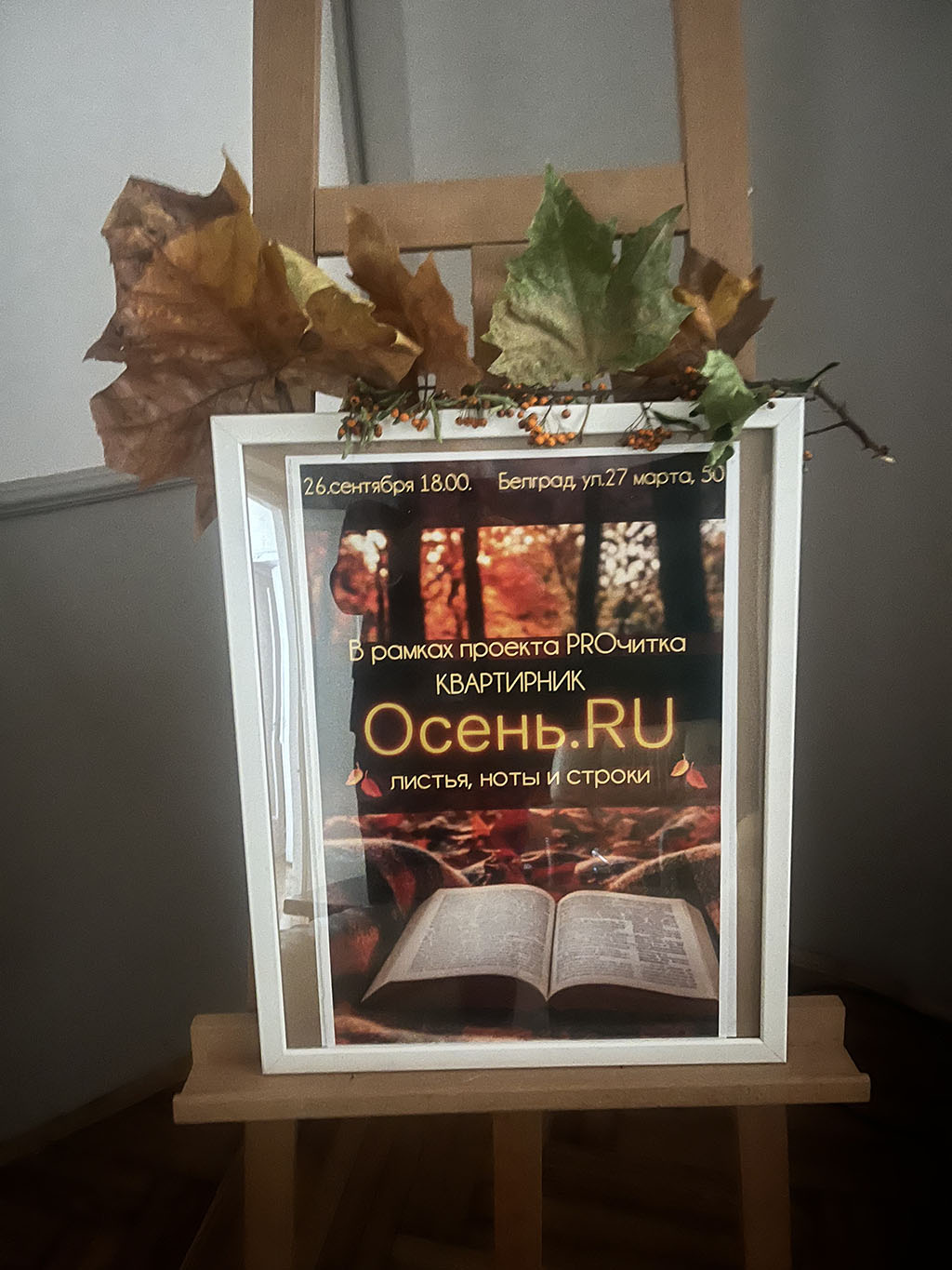 Белград. Сербия. 26 сентября 2025 года в офисе Сербского Отделения Международного Фонда духовного единства народов собрались любители русской поэзии, чтобы послушать и почитать стихи об осени — одном из самых красивых и любимых поэтами времени года. Квартирник «Осень.RU» состоялся в рамках проекта PROчитка.