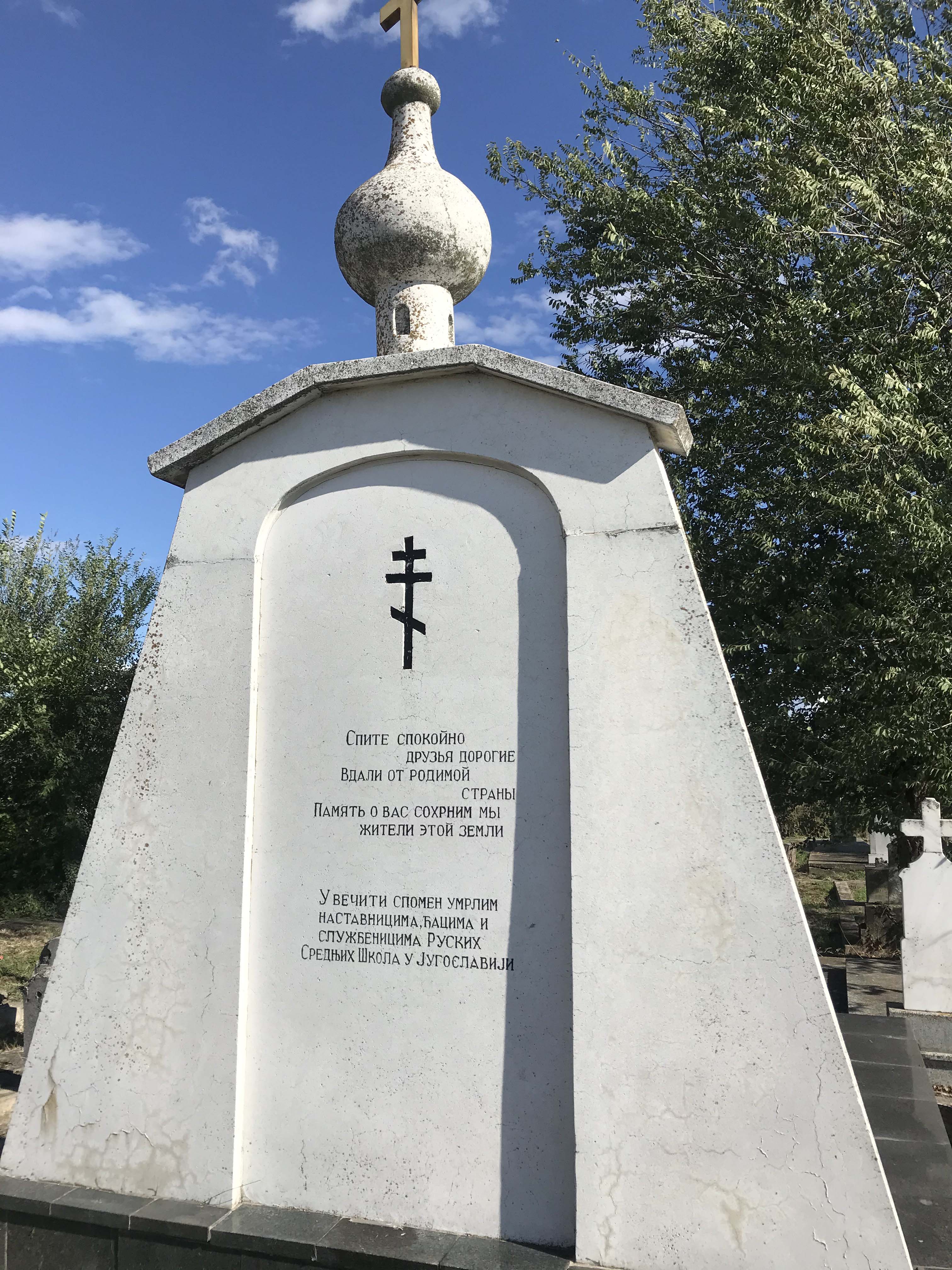 Большое число русских эмигрантов после революции в России оказались в г.Белая церковь. Ныне храм святого Иоанна Богослова находится под юрисдикцией Сербской Православной Церкви, но бережно хранит русские иконы и православные реликвии 100-летней давности, стены храма расписаны русскими и сербскими фресками, в т.ч. там есть фреска, посвящённая царской семье Романовых.