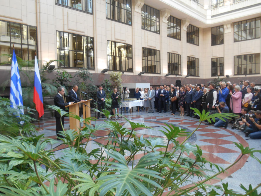 В церемонии открытия экспозиции приняли участие Министр иностранных дел Российской Федерации С.В.Лавров, Чрезвычайный и Полномочный Посол Греской Республики в Российской Федерации Андреас Фриганас, Заместитель Министра иностранных дел Российской Федерации А.В.Грушко, представители МИД Греческой Республики, Директор Четвертого Европейского Департамента МИД РФ А.Боцан-Харченко, другие ответственные сотрудники МИД России, дипломаты, аккредитованные в Москве, политические, религиозные и общественные деятели, журналисты.