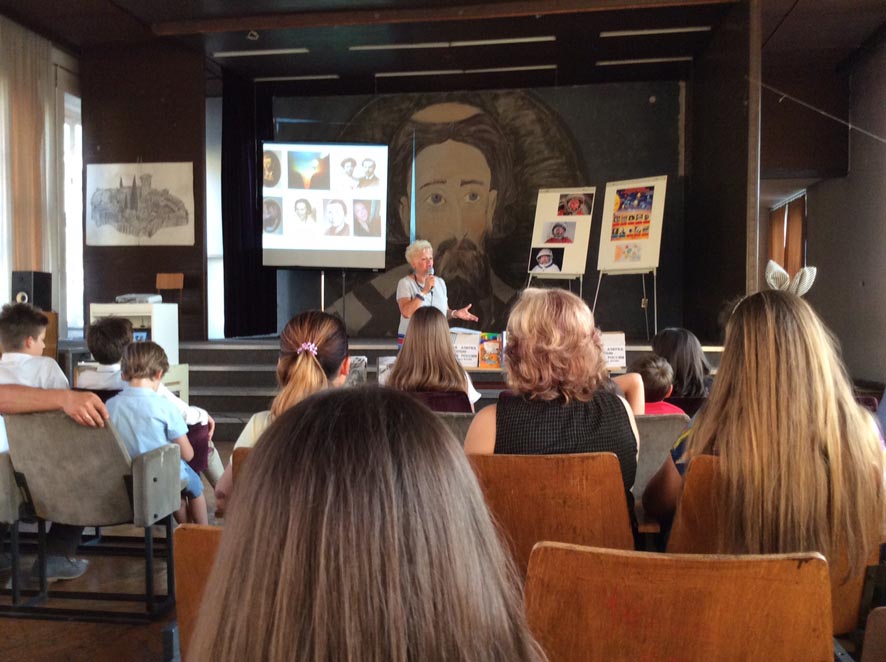 После лекции профессора Р.Тонкович подарила школе 600 книг на русском языке для развития русской культуры и повышения интереса к русской литературе. Самым активным членам клуба книги были вручены с автографом автора в качестве памятного подарка. Дети исполнили несколько песен, а Радмила Тонкович им подпевала. Атмосфера в зале царила творческая и радостная.